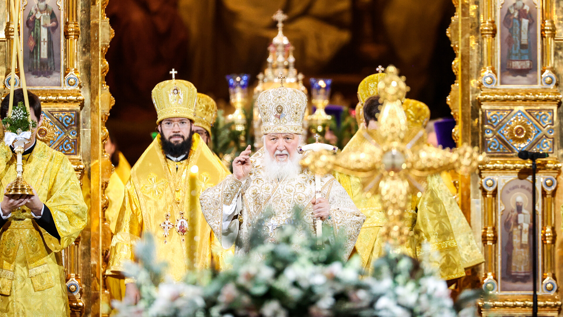 Patriarca Kirill, líder dos cristão ortodoxos russos, reza a missa de Natal no mês de janeiro em Moscou. (Foto: Serguêi Bobilev / TASS)