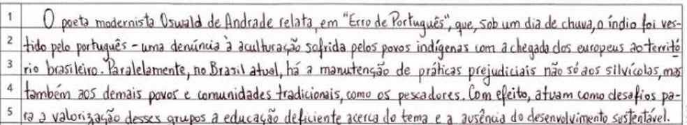 O poeta modernista Oswald de Andrade relata, em “Erro de Português”, que, sob um dia de chuva, o índio foi vestido pelo português – uma denúncia à aculturação sofrida pelos povos indígenas com a chegada dos europeus ao território brasileiro. Paralelamente, no Brasil atual, há a manutenção de práticas prejudiciais não só aos silvícolas, mas também aos demais povos e comunidades tradicionais, como os pescadores. Com efeito, atuam como desafios para a valorização desses grupos a educação deficiente acerca do tema e a ausência do desenvolvimento sustentável.