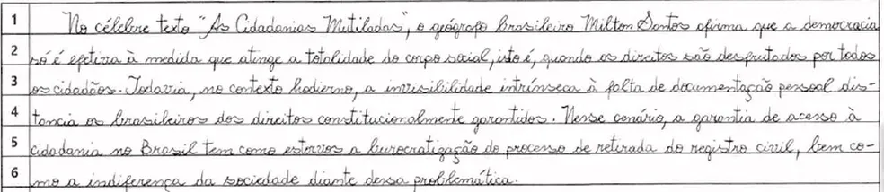 No célebre texto “As Cidadanias Mutiladas”, o geógrafo brasileiro Milton Santos afirma que a democracia só é efetiva à medida que atinge a totalidade do corpo social, isto é, quando os direitos são desfrutados por todos os cidadãos. Todavia, no contexto hodierno, a invisibilidade intrínseca à falta de documentação pessoal distancia os brasileiros dos direitos constitucionalmente garantidos. Nesse cenário, a garantia de acesso à cidadania no Brasil tem como estorvos a burocratização do processo de retirada do registro civil, bem como a indiferença da sociedade diante dessa problemática.
